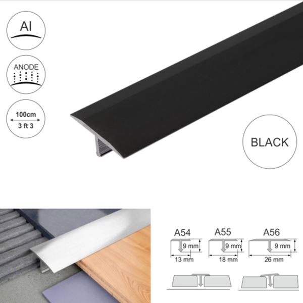 These are Anodised Aluminium T- joint profiles designed to provide transitions between existing same-height ( or slightly different height up to 2mm) , hard-surface floor (e.g., ceramic tile, natural stone, parquet flooring, laminate, etc.)